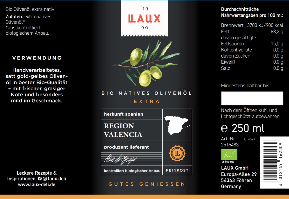 extra natives Olivenöl* *aus kontrolliert biologischem Anbau