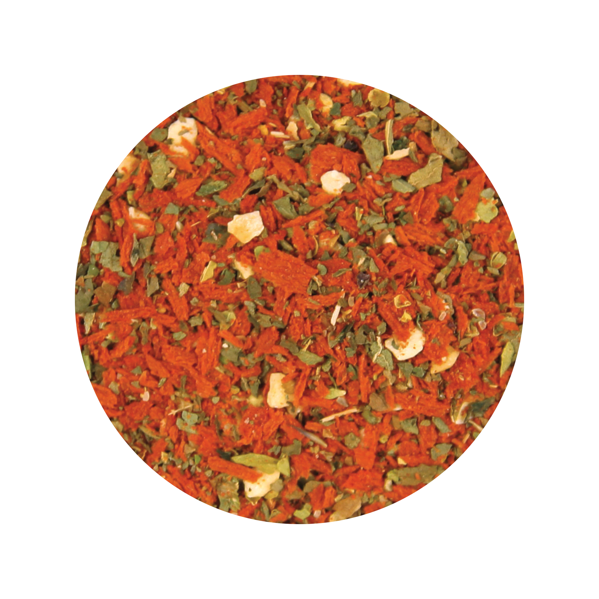 Tomatenflocken (Tomatenmarkkonzentrat, Maisstärke) 60%, Knoblauch 13%, Basilikum 10%, Salz, Oregano, Pfeffer, Thymian, Olivenöl extra nativ.