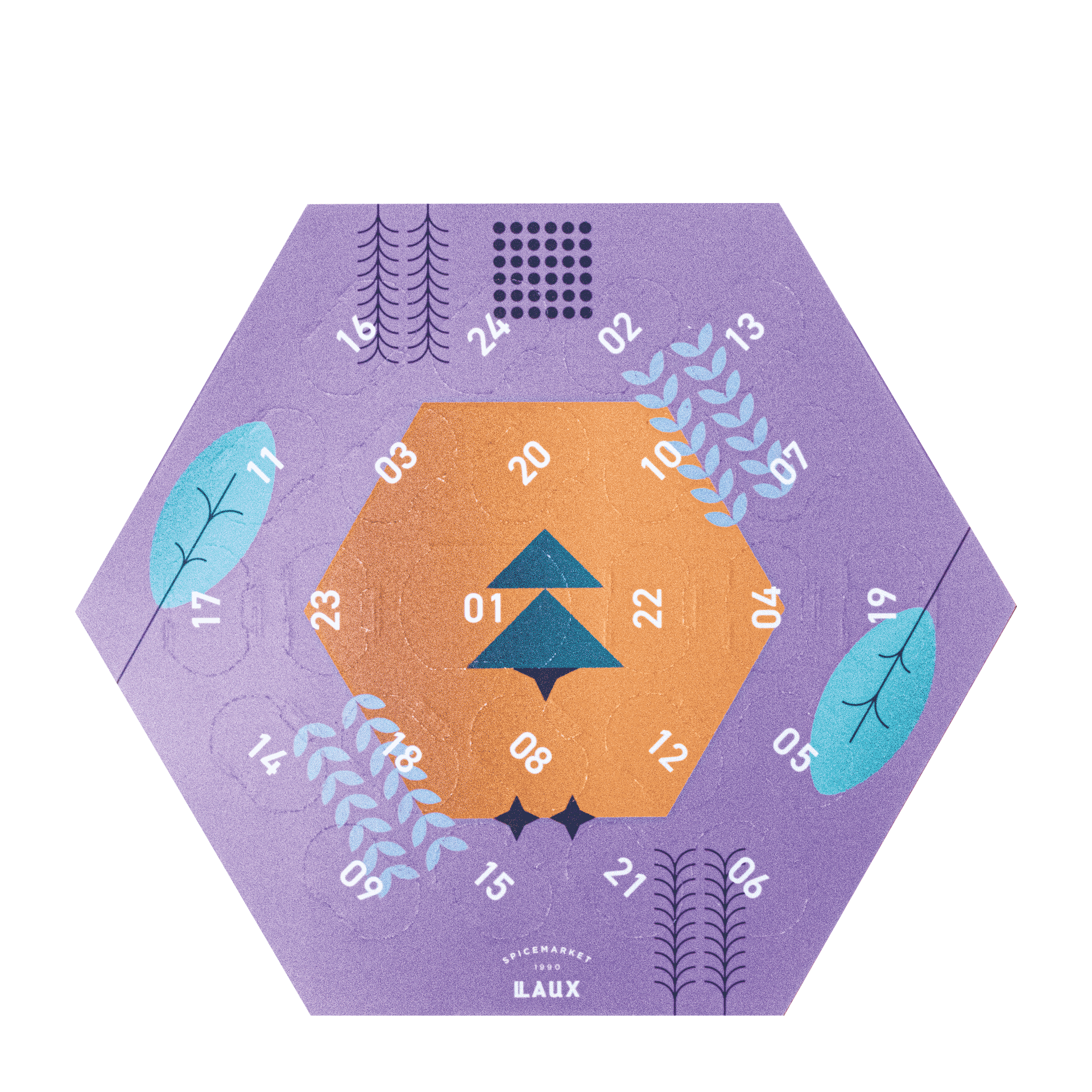 Hinter den Türchen lassen sich 23 aufregende Gewürze und Gewürzzubereitungen, Kräuter, Salz und Pfeffer-Spezialitäten aus aller Welt entdecken, die jedes Gericht ganz einfach zum Lieblingsessen machen. Neben bekannten Gewürzen aus unserem Shop, verstecken wir auch neue Produkte im Adventskalender. Jede Gewürzspezialität kommt in einem hübschen Glas-Röhrchen mit Korkverschluss – für puren Genuss und viel Spaß beim Kochen im Advent und darüber hinaus! Dazu gibt es ein tolles Booklet mit Tipps und Rezepten für leckeren Adventsgenuss. Und im ersten Türchen steckt eine spezielle Überraschung, mit der die 5 liebsten Gewürz-Röhrchen besonders schön präsentiert werden. Alles in allem ist der LAUX Gewürz Adventskalender eine echte Gewürz-Genussbox mit hochwertigen Produkten und Bestsellern aus dem LAUX Gewürzkosmos. Eine der besten Geschenkideen zum Selbergenießen oder Weiterverschenken für Familie und Freunde.