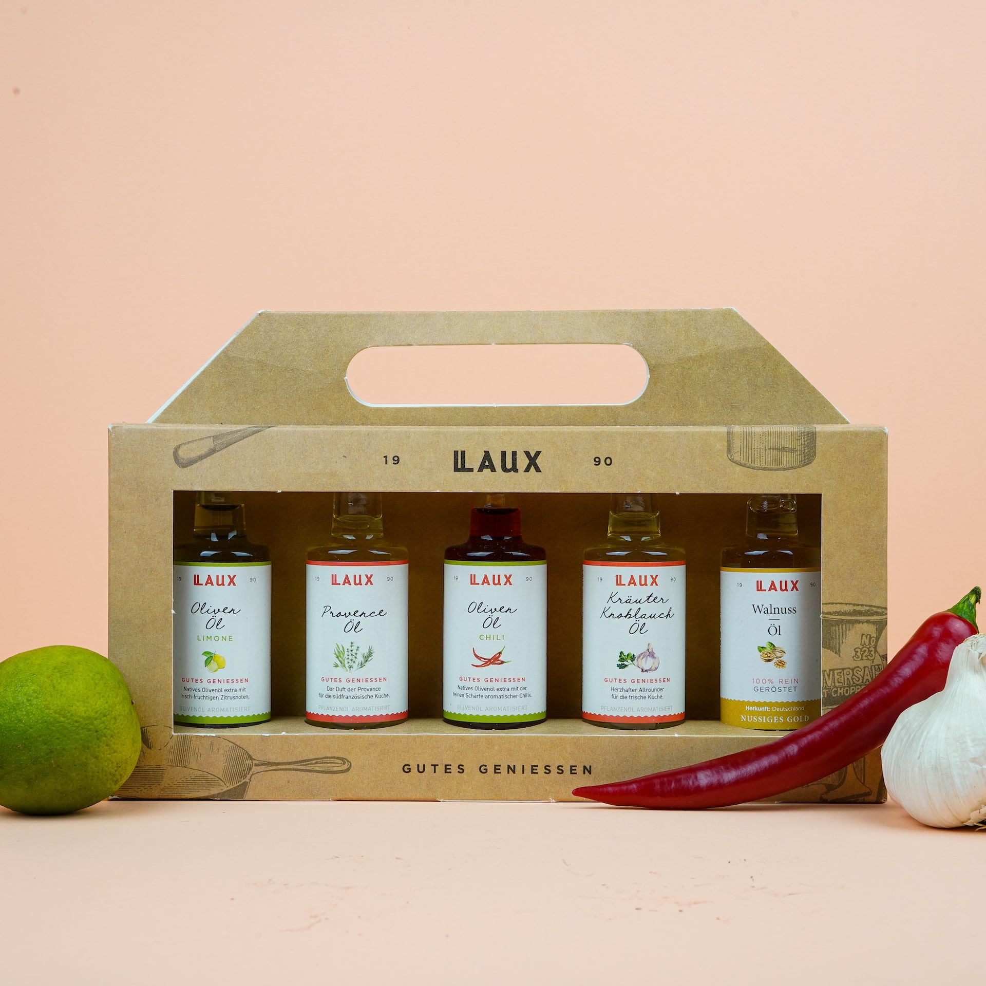 - Die beliebtesten LAUX Öl-Spezialitäten im Öl-Geschenkset oder zum Ausprobieren