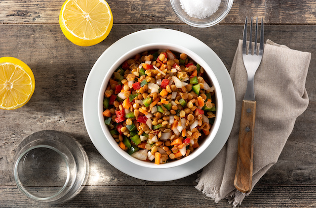 Lecker einfaches Linsensalat Rezept, verfeinert mit LAUX Berbere und Baharat Gewürz.