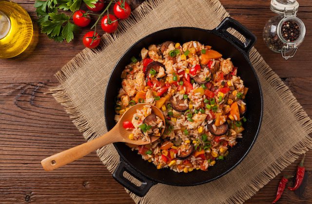 Einfaches Rezept für eine scharfe Reispfanne mit LAUX Harissa Gewürz.